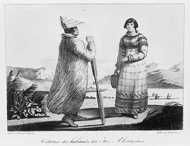The first contact between Russians and the Aleutian people likely occurred during the Bering Expeditions. Bering encountered the Aleutian peoples, or Aleuts as referred to by missionaries. Other Indigenous peoples encountered by the Russians were the Inuit, Athapascan, and Tlingit, among other existing tribes in the area. However, in studying Russian influence on these populations, the most notable is the influence upon the Aleutian peoples.