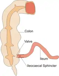 Increased preasure or irritation in the distal ileum will cause relaxation of this sphincter; increased caecal preasure or irritation will cause constriction.