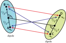 Where μ1 and μ2 are the magnitude of the two dipole moments, r is the distance between the two dipoles and θ1, θ2, and Φ describe the orientation of the two dipoles. This potential energy decays at a rate of .