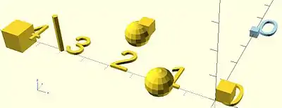 translate([i*space,0,0]) {children(i);text(str(i));}