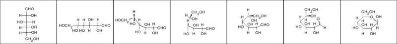 | D-glucose | L-glucose | D-galactose | D-mannose |
