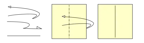 - A dotted line for a previous fold that's hidden, or sometimes a fold that's not yet made.