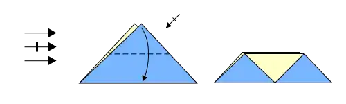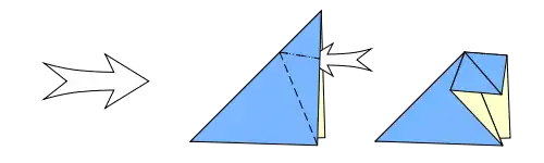 - A dashed and dotted line for mountain folds (there may be one or two dots per dash depending on the author)