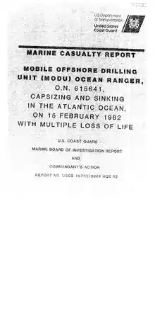 - ↑ "Mobile Offshore Drilling Unit (MODU) Ocean Ranger." Marine Casualty Report 1 (1983): 1-171. Print.