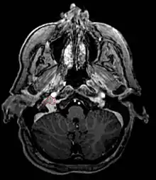| III | Tumor extending into petrous apex; may have intracranial canal extension |