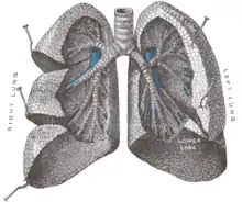 - Left Lung: Left Upper Lobe (LUL), Left Lower Lobe (LLL). Separated by oblique fissure. Lingula corresponds anatomically to RML, but is part of the LUL