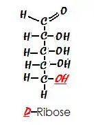 D and L enantiomers refer to the configurational stereochemistry of the molecule. L isomers have the hydroxy group attached to the left side of the asymmetric carbon furthest from the carbonyl, while D isomers have the hydroxy group on the right side. Many naturally occurring sugars are D isomers, although exceptions include arabinose and rhamnose. This system of nomenclature is NOT necessarily the same as optical rotation (D and L are not the same as d and l). In other words, D and L configurations do not fully designate absolute stereochemistry, rather they are determined on the basis of the anomeric carbon center and how its orientation compares to glyceraldehyde, the most basic and simple chiral sugar molecule. It is mostly in aldoses and is not present in ketoses.