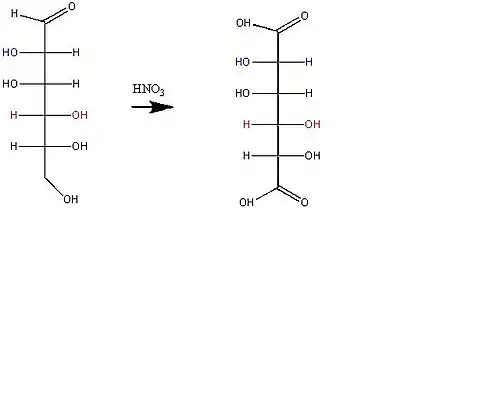 The last part of the Fischer proof was to figure out which one is actually glucose. The last clue to Fischer’s proof was that, while glucaric acid can be derived from two sugars, mannaric acid can only be derived from the oxidation of mannose, because mannaric acid is rotationally symmetrical.