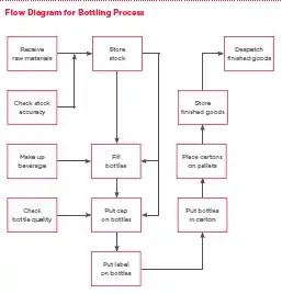 In the above flow diagram, the capping machine is the slowest machine in the process. If this machine operates at 1,000 bottles per hour, then this figure effectively sets the overall rate of production for the whole process.