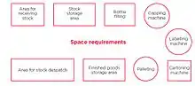 In the case of a bottling plant, the layout will need to take account of the most efficient flow of materials and operational processes.