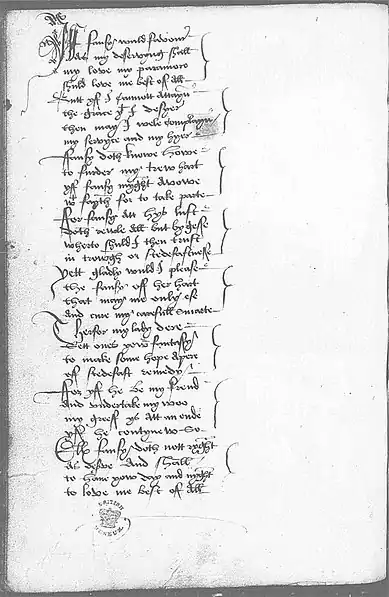 | ←The knott whych ffyrst my hart dyd strayn / | The Wandryng gadlyng in the somer tyde /→ |