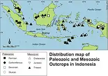 The oldest fossil-bearing strata of the Sunda area (i.e. the Asiatic part of the archipelago) have a lower-Devonian age. This has been stated by M. G. RUTTEN (1940, 1947), who found Clath- rodiction d. spatiosum BOEHNKE and Heliolites porosus OLDFUSS in the "Danau Formation" of East Central Borneo (Telen area). SUGIAMAN and ANDRIA (1998) have revisited and analyzed the fossils from this area.