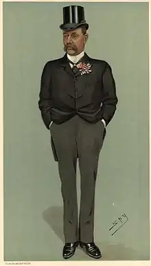 The late Frederic Carne Rasch, J.P., D.L., of Woodhill, became his father nine-and-forty years ago; and sent him to Eton and to Trinity, Cambridge, where he showed himself healthy in body and mind. That qualified him to be a Lieutenant in the 6th Dragoon Guards (the Carabineers); with whom he served for ten years. After that he naturally became Captain and Honorary Major of the 4th Battalion of the Essex Regiment; which he still is. He is also a Justice of the Peace, a Deputy-Lieutenant, and County Alderman for Essex; besides which, having unsuccessfully contested the Elland Division of the North-West Riding eleven years ago, he has been the chosen representative in Parliament of South-East Essex for ten. He is an Essex man and wholesome, bluff, genial fellow of strong opinions; who calls himself a Democratic Tory.
