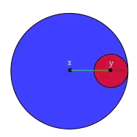 An equivalent definition using balls: The point is called a point of closure of a set if for every open ball containing , we have . In other words, every open ball containing contains at least one point in that is distinct from .