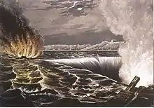 Beginning in 1837, the events known as the Caroline Affair, also known as the Caroline case, strained relations between the United States and Britain. A group of Canadian rebels led by William Lyon Mackenzie had fomented an uprising in Upper Canada (present-day Ontario). They had been agitating for a republic. After the Upper Canada Rebellion had failed, the rebels had been forced to flee to the United States. They fled as far as the Niagara River, which separates America (and New York State) from Canada. They took refuge on Navy Island on the Canadian side of the Niagara River. American sympathizers, who considered the rebellion a belated continuation of the American Revolutionary War, supplied them with money, provisions, and arms via the steamboat S.S. Caroline.