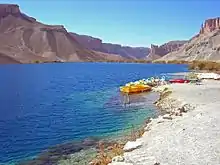 - Band-e-Amir National Park (Commander's Dam) - A Hazara-populated national park situated in central Afghanistan, this scenic beauty boasts 6 blue lakes (Band-e Gholaman, Band-e Qambar, Band-e Haibat [biggest and deepest lake], Band-e Panir, Band-e Pudina and Band-e Zulfiqar) accompanied with natural dams in between them. Band-e-Amir hosts one of the rarest lakes in the world that are made out of a form of limestone called travertine. Several requests were made to the Afghan government over the decades to admit Band-e-Amir as Afghanistan's first national park. Finally, after many years of destructive war, the park was given its worthy title in 2009. According to a 2013 report, the national park entertains around 6,000 tourists every year. The local Hazaras use the national park to aid them in their livelihood. Band-e-Amir is popular during the summer times as the park gets overbearingly cold during the winter.