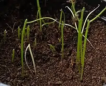 ChivesChives are the smallest kind of onion that you can eat, and used as an herb. They first grew in Asia, Europe, and North America. All parts of the chive plant can be eaten, including the flower! DirectionsWith your Chive seeds and all of your tools ready, it is time to plant and grow some Chives! ![]() A Chive seed. Step 1First, you have to separate and count the seeds that you want to plant. Chive seeds are small, but you should be able to separate them with your hands. ![]() Leave a little space from the top of the pot. Step 2Then, either use your hands or a small cup to put your soil into the pot. This can be messy! You might want to do this outside, or over your sink because the soil can clump together and spill. Fill the pot with soil until it is close to the top. Gently push on the soil so it is a little firm, but do not too push too hard.
