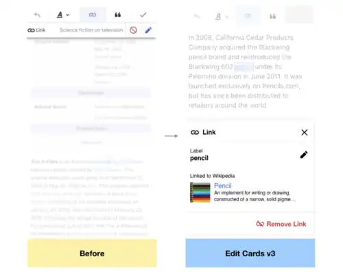 - Edit cards: This is a clearer way to add and edit links, citations, images, templates, etc. in articles. You can try this feature now. Go here to see how: 📲 Try Edit Cards.