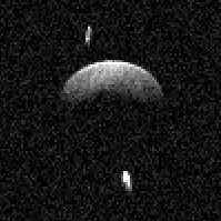 ![]() Radar image of 2001 SN263 and its two satellites imaged by the Arecibo Observatory in 2008 | |