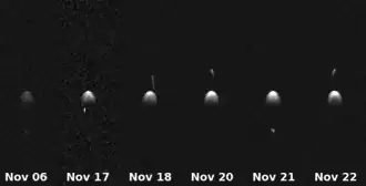 The asteroid was a planned target of NASA's Janus Serenity space probe, which was scheduled to launch in 2022 alongside NASA's Psyche spacecraft, and to arrive at 1996 FG3 in 2026.[17] 1996 FG3 became impossible to reach for Janus when the launch of Psyche was delayed.[18]