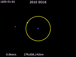 (419624) 2010 SO16 is a sub-kilometer asteroid in a co-orbital configuration with Earth, classified as near-Earth object and potentially hazardous asteroid of the Apollo group. It was discovered by the Wide-field Infrared Survey Explorer space telescope (WISE) on 17 September 2010.[1][2]