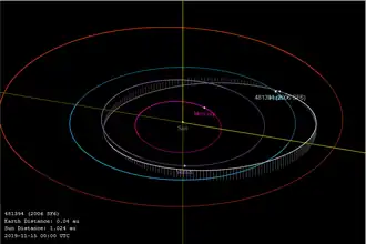 - 1 2 3 4 5 6 7 8 9 10 11 "JPL Small-Body Database Browser: 481394 (2006 SF6)" (2019-11-19 last obs.). Jet Propulsion Laboratory. Retrieved 10 January 2020.