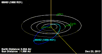 - 1 2 3 4 5 6 7 8 "JPL Small-Body Database Browser: 66063 (1998 RO1)" (2010-09-10 last obs.). Jet Propulsion Laboratory. Retrieved 18 November 2017.