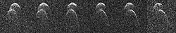 ![]() Radar images of 1999 JV6 taken by the Goldstone Radar on 12 January 2015 | |