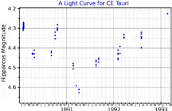 A light curve for CE Tauri, plotted from Hipparcos data[9]