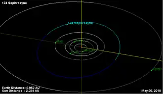- 1 2 3 4 Yeomans, Donald K., "134 Sophrosyne", JPL Small-Body Database Browser, NASA Jet Propulsion Laboratory, retrieved 12 May 2016.
