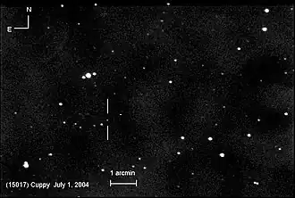 - 1 2 3 4 5 "JPL Small-Body Database Browser: 15017 Cuppy (1998 SS25)" (2017-02-01 last obs.). Jet Propulsion Laboratory. Retrieved 5 July 2017.