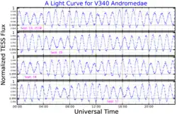 Rufener and Bartholdi (1982) included the star (under the name HD 221756) in their list of 333 variable, microvariable and suspected variable stars, based on multicolor photometry performed at several observatories in the 1960s and 1970s. However they were unable to conclusively demonstrate that the star's brightness varied.[11] Proof of variability, along with a light curve and period estimate of 63 minutes, was published by Paunzen and Handler in 1996.[12] The star was given its variable star designation, V340 Andromedae, in 1997.[13]
