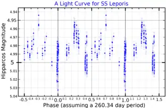 - 1 2 3 "SS Lep, database entry". The combined table of GCVS Vols I-III and NL 67-78 with improved coordinates, General Catalogue of Variable Stars. Moscow, Russia: Sternberg Astronomical Institute. Archived from the original on June 20, 2017. Retrieved September 9, 2009.