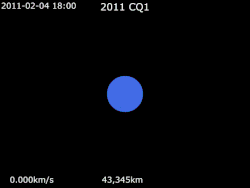 | 2011 CQ1 | 2011-02-04 19:39 | 5474 km | ±5 km | 1 day (35 obs) | data |