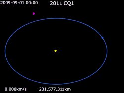 Animation of 2011 CQ1's orbit - 2011 flyby