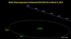 - 1 2 3 "JPL Close-Approach Data: (2014 DX110)" (last observation: 5 March 2014; arc: 5 days). Retrieved 5 March 2014.