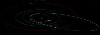 2017 QP1 is a micro-asteroid on an eccentric orbit, classified as near-Earth object of the Apollo group that made a close approach of 0.17 lunar distances from Earth on 14 August 2017 at 21:23 UTC. It was first observed by ATLAS at Haleakala Observatory, Hawaii, on 16 August 2017, two days after its closest approach. The asteroid is estimated to measure between 37 and 83 meters in diameter. It flew past Earth at a speed of 23.97 km/s under the south pole of the Earth.[2][3]