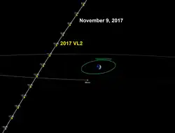 - 1 2 "Asteroid 2017 VL2 close approach – International Asteroid Warning Network". iawn.net. Archived from the original on 10 December 2017. Retrieved 9 December 2017.