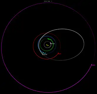 ![]() Orbital diagram of 2018 AH with the planets of the inner Solar System | |