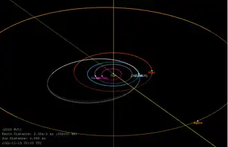 2022 WJ1 orbited from inside Earth's orbit with perihelion at 0.92 AU to the middle of the asteroid belt at 2.8 AU.[5]
