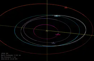 - ↑ "MPEC 2022-Y25 : 2022 YG". Minor Planet Electronic Circular. Minor Planet Center. 17 December 2022. Retrieved 20 December 2022.