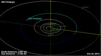 - 1 2 3 4 5 6 "203 Pompeja". JPL Small-Body Database. NASA/Jet Propulsion Laboratory. Retrieved 12 May 2016.