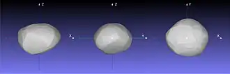 ![]() Shape model of Orus viewed from multiple orthogonal perspectives | |