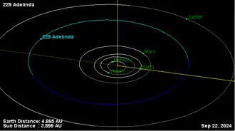 - ↑ "229 Adelinda". JPL Small-Body Database. NASA/Jet Propulsion Laboratory. Retrieved 12 May 2016.
