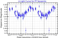 A light curve for PT Serpentis, plotted from Hipparcos data[10]