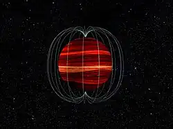 Radio emissions imply a magnetic field strength greater than 1.7 kG, or approximately 3000 times stronger than the Earth's magnetic field.[12]