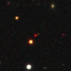 2MASS J12373919+6526148 (hereafter 2MASS 1237+6526) is a brown dwarf object with late spectral type T in the constellation of Draco, nearly 34 light-years away from the Sun.[3] The substellar object could likely host a very low-mass companion (yet undetected but inferred), possibly in the planetary regime.[2] This has been inferred from unusual Hα emission that it exhibited in the past.[5]