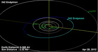 - 1 2 "342 Endymion (1892 K)". JPL Small-Body Database. NASA/Jet Propulsion Laboratory. Retrieved 11 May 2016.