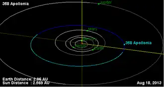 - 1 2 "358 Apollonia (1893 K)". JPL Small-Body Database. NASA/Jet Propulsion Laboratory. Retrieved 11 May 2016.