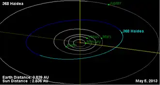 - 1 2 "368 Haidea (1893 AB)". JPL Small-Body Database. NASA/Jet Propulsion Laboratory. Retrieved 11 May 2016.